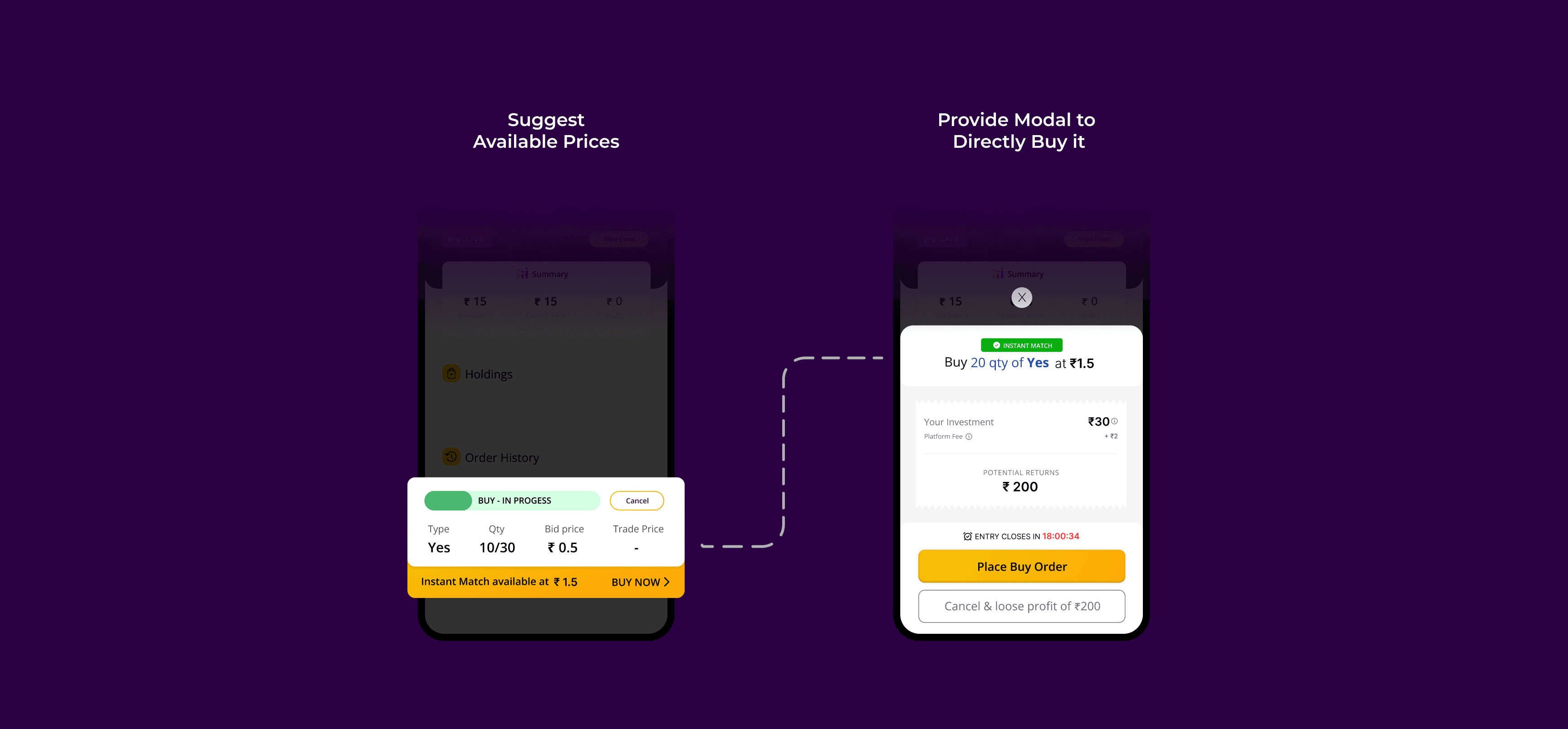 A feature that finds the closest buy/sell orders and suggests a near-perfect match. Almost instant trade. More profit. Less waiting.